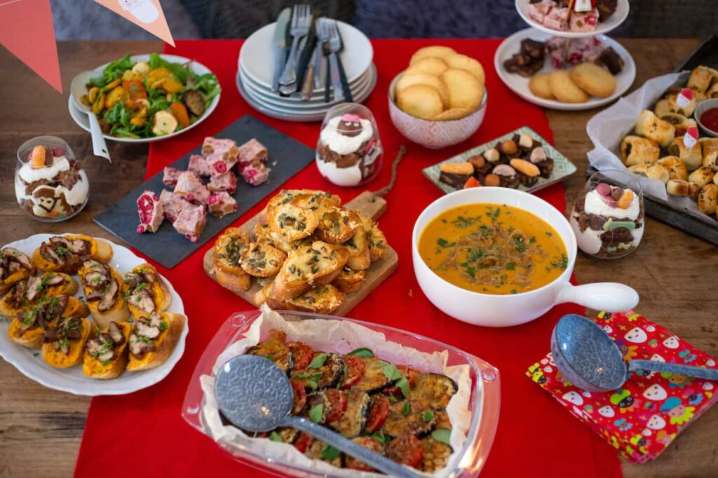 Ik vertelde het al, dit jaar hebben we een sinterklaasbuffet bedacht voor pakjesavond. Op het buffet vind je shortbread koekjes met mandarijn, de makkelijkste worstenbroodjes, fudge met speculaas, crostini’s met pompoenspread en kruidige speculaaskip, rocky road met witte chocolade, Ruby kruidnoten en gevriesdroogde frambozen, uien-pompoensoep met gruyere broodjes, een handige dubbele tray-bake als hoofdgerecht en een trifle met speculaascake en strooigoed als toetje.