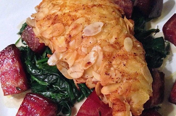Deze is alweer van een tijdje geleden, maar blijft fijn. Je paneert je kip met een amandelkorstje, bakt en serveert met romige spinazie en geroosterde biet.