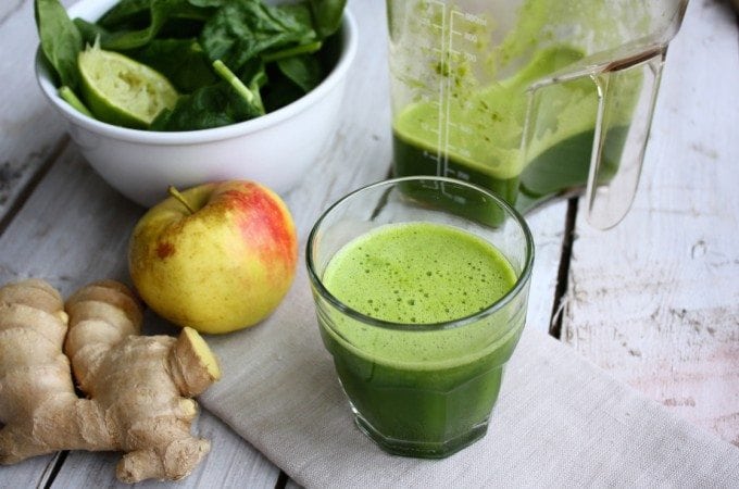 Even een lekker fris sapje tussendoor: deze spinaziesap met appel, limoen en gember blijft een van mijn grote favorieten.