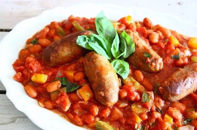 Een bonenstoof met wat Italiaanse invloeden en gebakken worstjes. Ook vandaag ben je weer zo klaar.