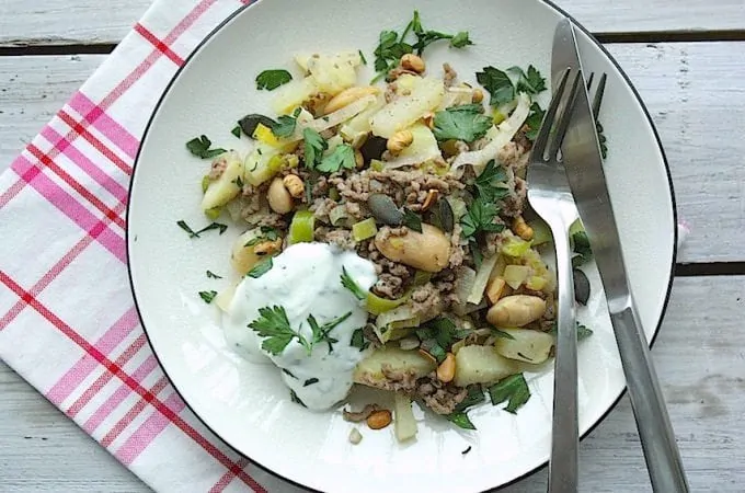 Lekker makkelijk vandaag met dit gehaktpannetje met prei en yoghurt.