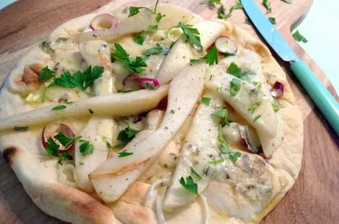 Met naan kun je heerlijke lunchcombinaties maken, wat vind je bijvoorbeeld van deze naan met peer en gorgonzola? Ook heerlijk is een naan belegd met een gebakken eitje, kaas en piccalilly.