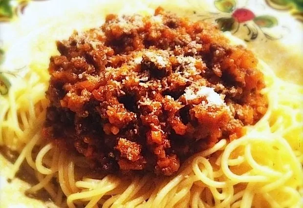 Ik kondigde ‘m hierboven al aan. Deze week gaan we een heerlijke spaghetti al ragù maken. Tip: maak een dubbele hoeveelheid saus en vries de andere helft in. Zo heb je altijd een bakje saus op voorraad voor drukkere dagen.