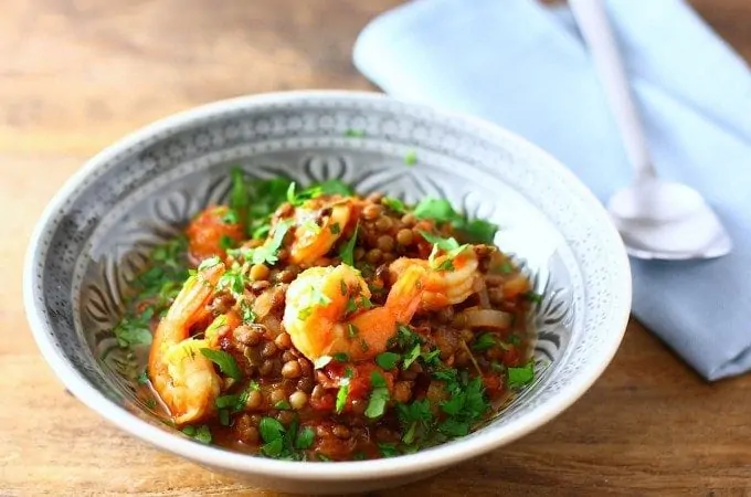 Een van mijn meest recente ontdekkingen. Deze linzenstoof met garnalen en Jamaican Jerk is echt een aanrader.