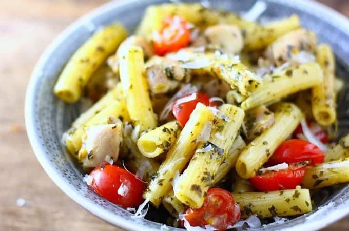 Pasta met kip en pesto vandaag. Maar dan wel met een echte winterse pesto, deze is namelijk gemaakt van boerenkool.