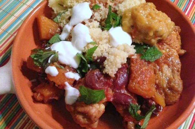 Comfort food vandaag! Er staat Marokkaanse kip met pompoen op het menu.