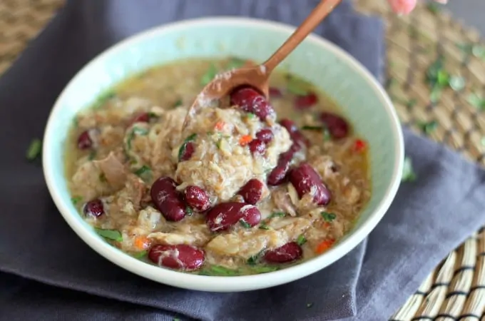 Mijn visboer had laatst een briljante erwtensoep met vis gemaakt en die inspireerde me tot het maken van deze makreelsoep met bonen. Een geweldig soepje voor de dinsdag.