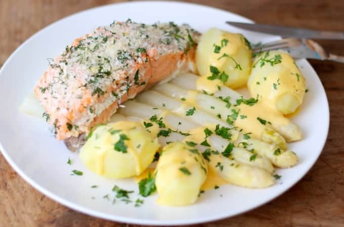 ‘s Avonds aan de asperges? Wat denk je van klassieke asperges met zalm en hollandaisesaus? Of maak een licht voorgerechtje met asperges en Hollandse garnalen.