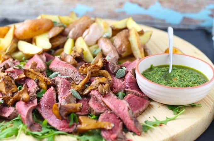 Voor ‘s avonds misschien deze steak chimichurri met gebakken aardappeltjes?