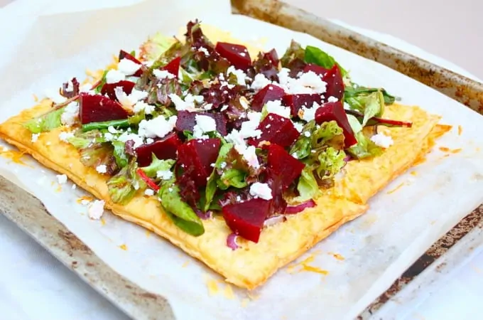 Vrijdag en het weekend staat voor de deur. Hoe leuk om dan uit te kunnen kijken naar een lekker gerecht, wat ook nog eens snel klaar is. Zoals deze salade pizza met bietjes en geitenkaas. Natuurlijk kun je ook voor ander beleg kiezen, maar ik houd van deze combinatie.