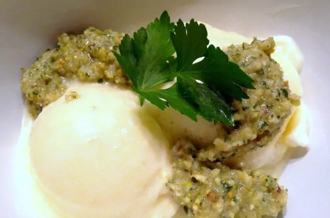 Bij een zomers weekmenu hoort natuurlijk ijs. Dit ananas sorbetijs met selderij en citroen pesto is een echte verwennerij. Lekker voor op de zondag.