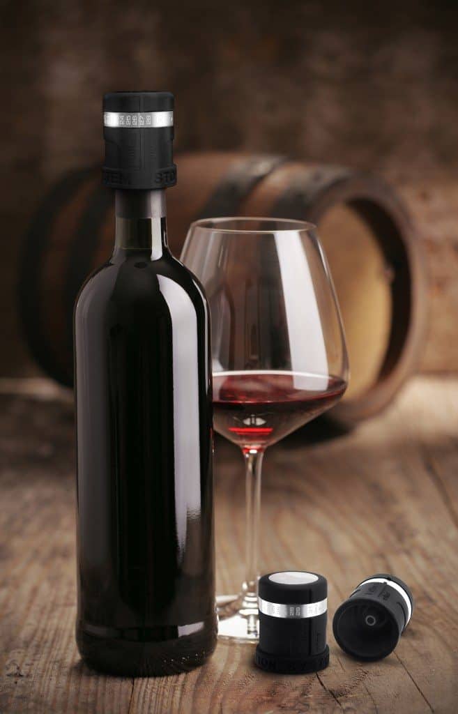 Je kent vast het probleem van de geopende wijnfles die staat te verpieteren, omdat je niet de hele fles in 1 keer opdrinkt. Daar is nu een nieuwe oplossing voor: AntiOx. Deze slimme dop is getest en goedgekeurd door bekende Franse en Spaanse sommeliers. AntiOx bewaart aroma’s en de degustatiekwaliteiten van de wijn tot zeker een week. Zonder vacuüm. De actieve koolfilter in de AntiOx neutraliseert de oxidatie van de wijn, waardoor je dagenlang kunt genieten van je favoriete wijn. Met de instelbare datumring weet je precies wanneer de fles is geopend. De consumentadviesprijs is € 19,95. Verkrijgbaar bij Bossenbroek of in de betere wijnwinkel.