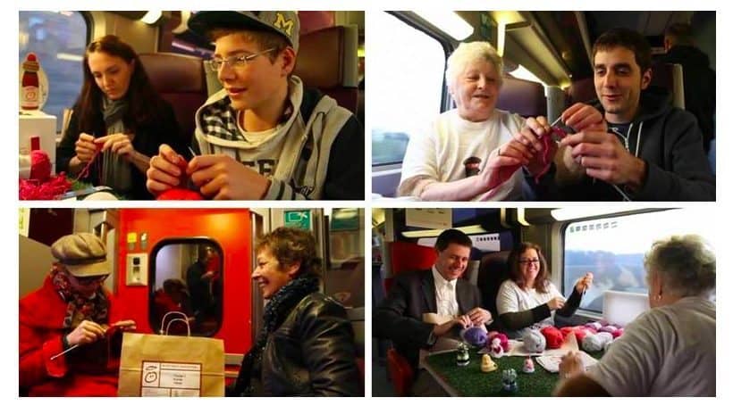 Innocent smoothies stapt met hun breipennen op de trein voor het goede doel. In samenwerking met Kiosk en NS rijdt er op 20 november een trein tussen Alkmaar en Maastricht met daarin een knusse SocialCoupé, waarin Innocent met reizigers gaat breien. Wie opstapt, krijgt een innocent smoothie, wol en breinaalden en leert in de tijd van een treinrit ‘mutsjes breien’ van drie handige oma’s. De kunstwerkjes zetten zij op hun flesjes om aandacht te vragen en geld op te halen voor eenzame ouderen.