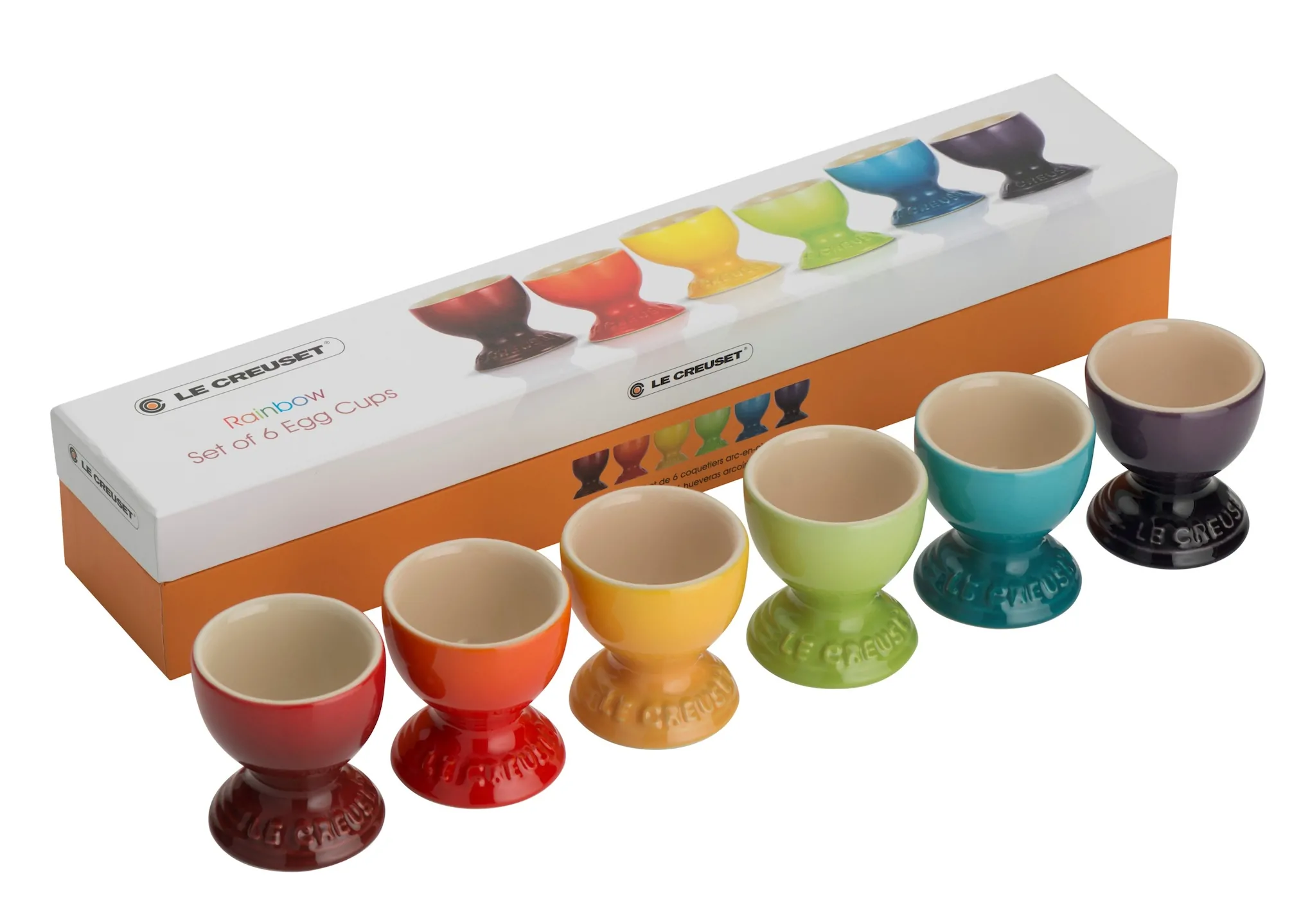 Een eitje in de morgen wordt nu wel heel gezellig met deze kleurrijke eierdopjes van Le Creuset. Verkrijgbaar in maar liefst 10 verschillende kleuren. Per 6 of per 4 in een handige cadeauverpakking. De eierdopjes zijn, net als alle aardewerken producten van Le Creuset, kleur-, geur- en smaakneutraal dankzij het ijzersterke glazuur en vaatwasmachinebestendig. Een doos van 6 ‘rainbow’ eierdopjes kost € 39,90 en per 4: € 27,90.
