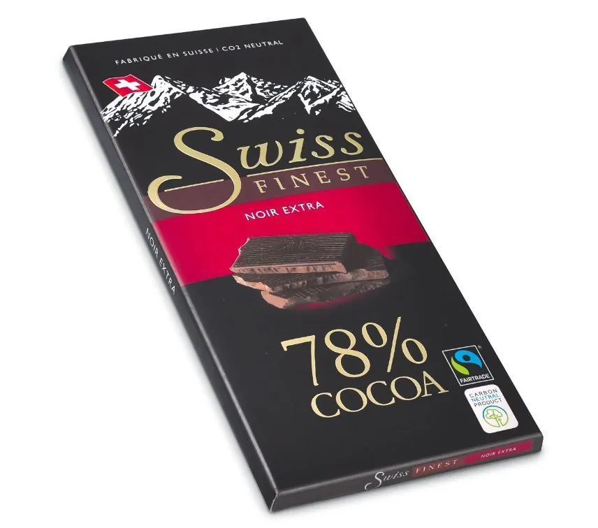 Als ik chocolade koop in de supermarkt is dit vaak de extra pure variant van Swiss Chocolade. Zwitserland heeft een buitengewoon goede naam op het gebied van chocolade en Swiss Chocolade doet die naam eer aan met een lijn van rijke, intense chocoladesmaken met een hoog cacaopercentage. Swiss koopt alleen cacao in bij Fairtrade gecertificeerde cacaoproducenten. Zo kunnen ze controle houden over de kwaliteit van de ingekochte cacaobonen en krijgen de cacaoboeren een eerlijke prijs voor hun cacao.