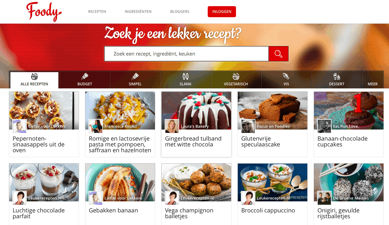 Foody.nl is een nieuw food platform waar je een grote verzameling aan recepten (al meer dan 4.000) vindt van een aantal grote Nederlandse foodbloggers. Met erg handige zoekfilters waardoor je er iedere dag terecht kunt voor de lekkerste recepten. Handig is dat je er ook een persoonlijk profiel kunt aanmaken waardoor je je favoriete recepten kunt opslaan en zoekresultaten krijgt die passen bij jouw smaakprofiel. Francesca Kookt vind je er ook tussen! Neem hier een kijkje op Foody.nl.