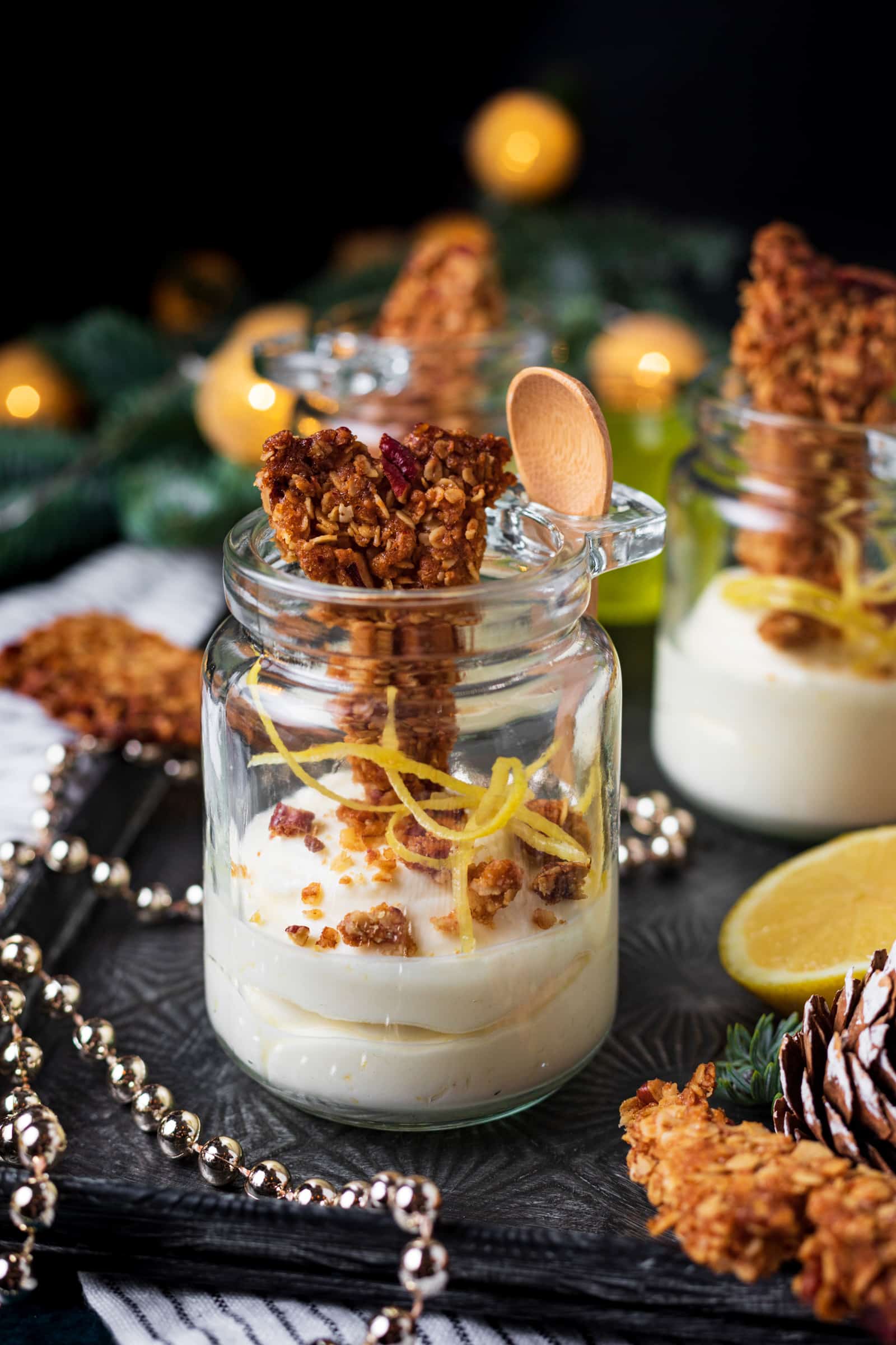 4. Dessert: Citroen-mascarponemousse met haverkrokantjes en gekonfijte citroenschil