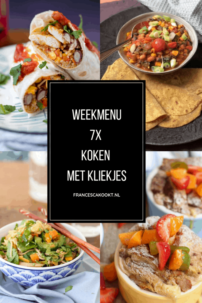Geniet van de gerechten uit dit weekmenu! Als je een foto deelt op social media, vergeet dan niet om mij te taggen met #francescakookt en #foodbattle. Zo kan ik je foto terugvinden en dat vind ik hartstikke leuk om te zien.