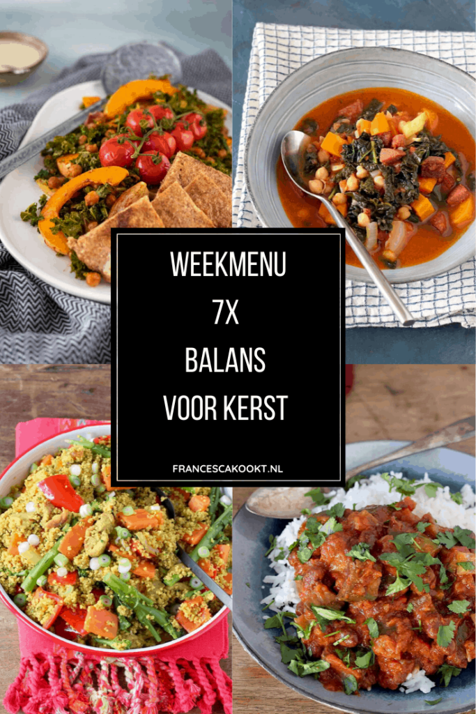 Daarom heb ik van deze week voor Kerst een balansweek gemaakt. Voor mezelf en jullie, met een weekmenu boordevol bewuste recepten voor doordeweeks. Dan moet je de rest van de dag natuurlijk niet alsnog heel veel kerstbrood en chocolade eten, hè. Maar dit is meer gericht aan mezelf dan aan jullie, haha.