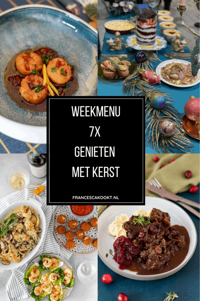 Het weekmenu van deze keer zit boordevol suggesties voor de kerstdagen. Pik eruit wat je lekker vindt en laat me zeker even weten hoe het gesmaakt heeft. Ik wens je hele fijne kerstdagen en vooral een mooi samenzijn met de mensen die je liefhebt. En eet lekker!