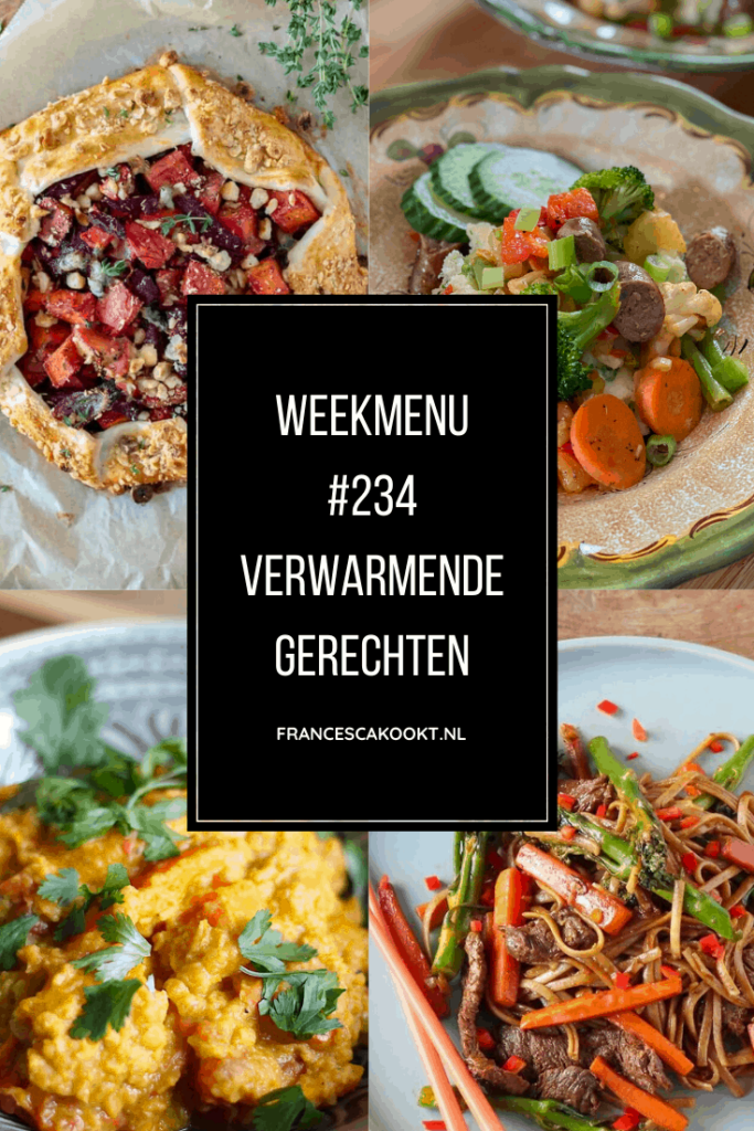 Geniet van de gerechten uit dit weekmenu! Als je een foto deelt op social media, vergeet dan niet om te taggen met #francescakookt. Zo kan ik je foto vinden en dat vind ik hartstikke leuk om te zien.