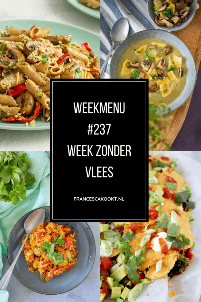 Geniet van de gerechten uit dit weekmenu! Als je een foto deelt op social media, vergeet dan niet om te taggen met #francescakookt. Zo kan ik je foto vinden en dat vind ik hartstikke leuk om te zien.