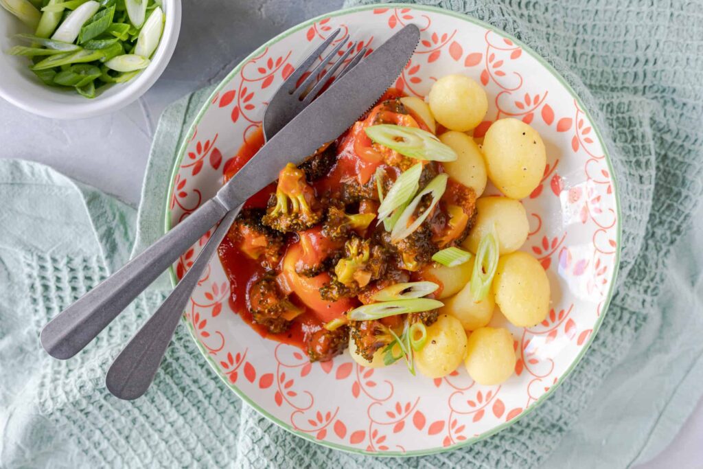 Op maandag (kan natuurlijk ook volgende week maandag) eten we een van mijn meest recente recepten: gestoofde broccoli met tomaat en krieltjes. Zo simpel om te maken en waanzinnig lekker. Als je het lekker vindt, kun je er ook nog wat uitgebakken stukjes cervelaatworst of chipolataworst aan toevoegen.