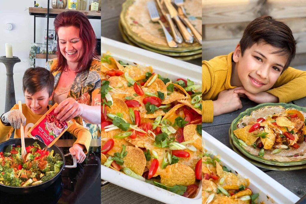 Vaak wordt gedacht dat enchiladas uit Mexico komen, maar niets is minder waar. Enchiladas zijn een typisch Tex Mex gerecht. Een keuken die is ontstaan op de grens van Mexico en Texas waarbij beide keukens zijn samengevoegd. Gerechten zoals enchiladas, taco’s en burrito’s komen hier allemaal vandaan en zijn grote favoriet bij ons thuis. Toen Jessey dan ook zelf een Tex Mex gerecht mocht bedenken, wilde hij een combinatie van enchiladas met kip én een loaded nachos topping. En dat vond ik geniaal.