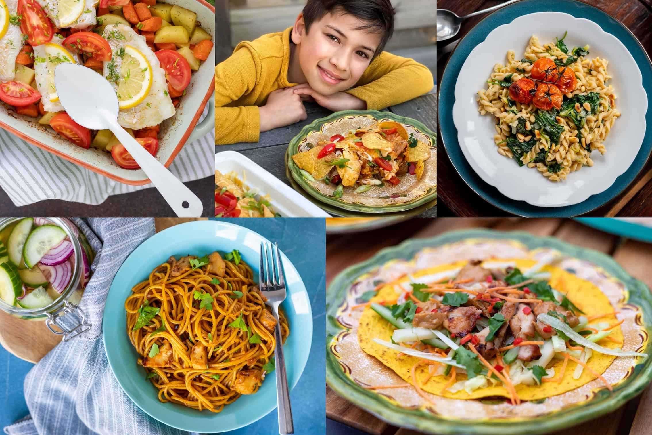 Als ik aan mijn oudste kind vraagt wat hij wil eten, krijg ik standaard het antwoord ‘kip, kip en nog eens kip’. Gisteravond vroeg ik het nog eens aan ‘m om te checken en ja, toen kreeg ik weer hetzelfde antwoord ;-). Nou is Jessey een prima eter, en zijn kleine broertje al helemaal. Maar toch heeft hij voorkeuren, net als ieder kind, en ik maak hem gelukkiger met pasta, wraps, ovenschotels en bami dan met andere gerechten. En dat is ook prima, ik maak het vaak en graag voor hem. Want juist ook in dit soort gerechten kun je veel voedingsstoffen en groenten verwerken. En dat inspireerde me deze week tot het ‘kidsproof plus’ weekmenu. Een menu boordevol kidsproof gerechten met iets extra’s. Extra groenten, vezels én plezier aan tafel om precies te zijn.