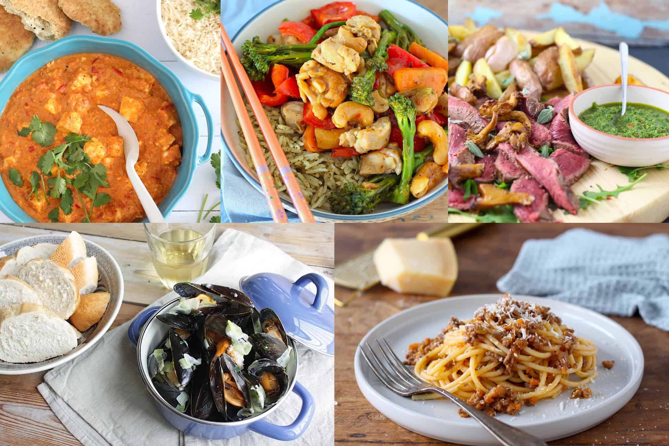 Zo staat er een mosselpannetje op het menu, maar ook kip cashew, butter paneer curry, steak chimichurri en frittata met doperwten en rucola. Voor het weekend koos ik mijn twee favoriete Italiaanse klassiekers: spaghetti al ragù en panna cotta. Lastige keuze wel, want eigenlijk wilde ik ook wel spaghetti aglio, olio e peperoncino en spaghetti alla carbonara eten, dus die recepten geef ik er gewoon als bonus bij ;-).