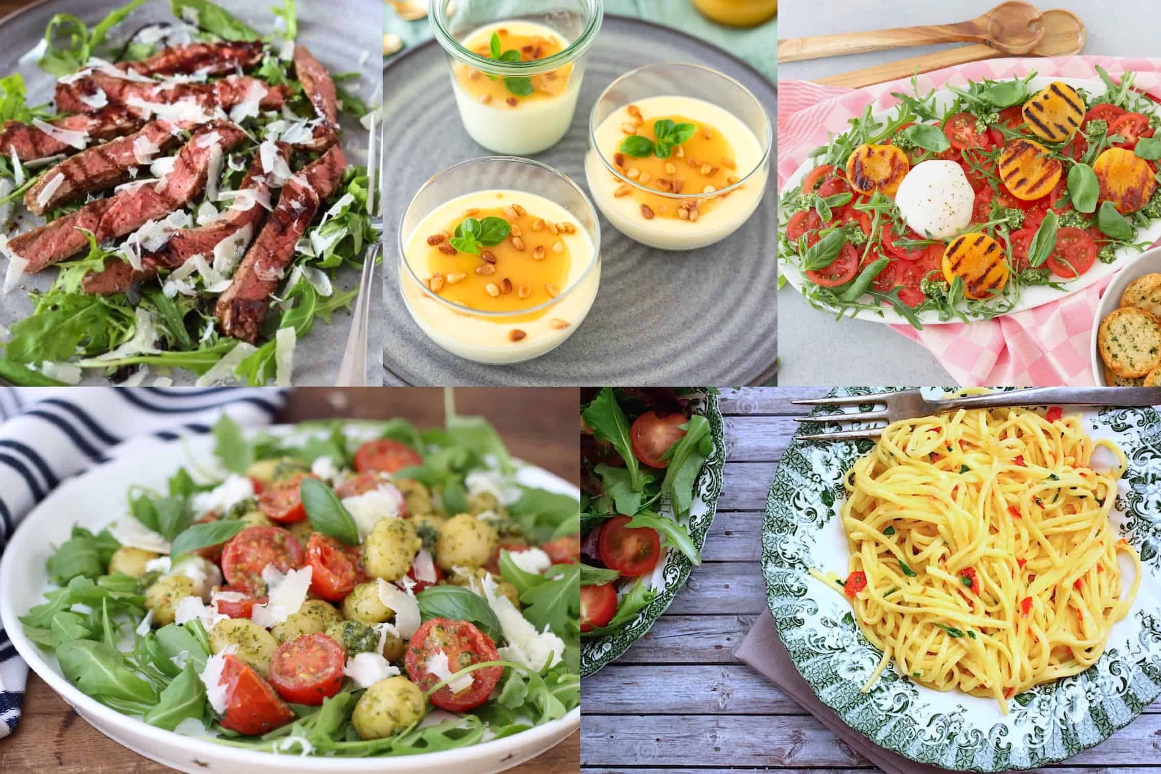 Ik heb mijn hele weekmenu kunnen vullen met Italiaanse gerechten, want mijn blog puilt uit van de Italiaanse recepten. Het was bijna moeilijk kiezen ;-). Ik heb een selectie gemaakt uit de lichtere Italiaanse gerechten, omdat we ook aankomende week weer tropische temperaturen mogen verwachten. En ik weet niet hoe het met jullie zit, maar dan eet ik het liefst niet te zwaar. Denk aan een frisse caprese salade met burrata, spaghetti aglio, olio e peperoncini, gnocchi met verse pesto, tomaat en mozzarella en tagliata met basilicumstroop en rucola. Mijn grote favoriet, pollo al marsala, staat er ook in en die ga ik zeker maken aankomende week. En voor het weekend heb ik een geweldige sandwich met gepaneerde kip en pancetta én een panna cotta met basilicum en lemon curd voor jullie in de aanbieding. Rest me nog maar een ding, jullie allemaal buon appetito te wensen!