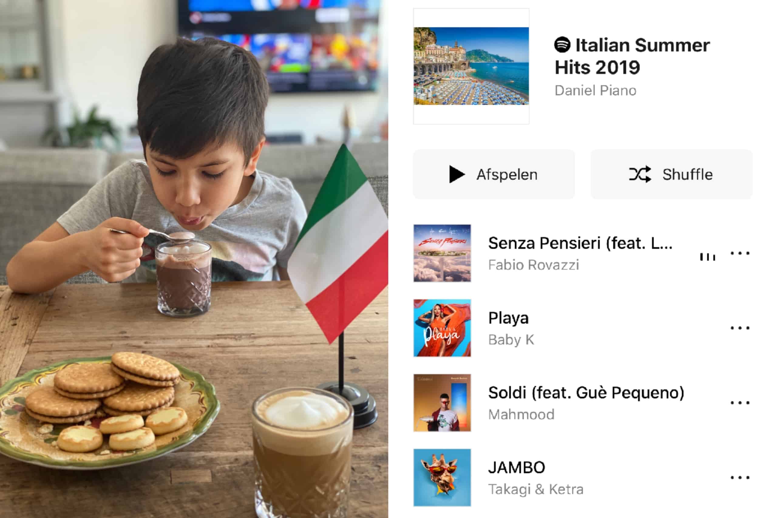 - Zet Italiaanse muziek op: de playlist ‘Pizza restaurant’ is heerlijk old school en de playlist ‘Italian Summer Hits 2019’ past helemaal bij het prachtige weer van aankomende week. .