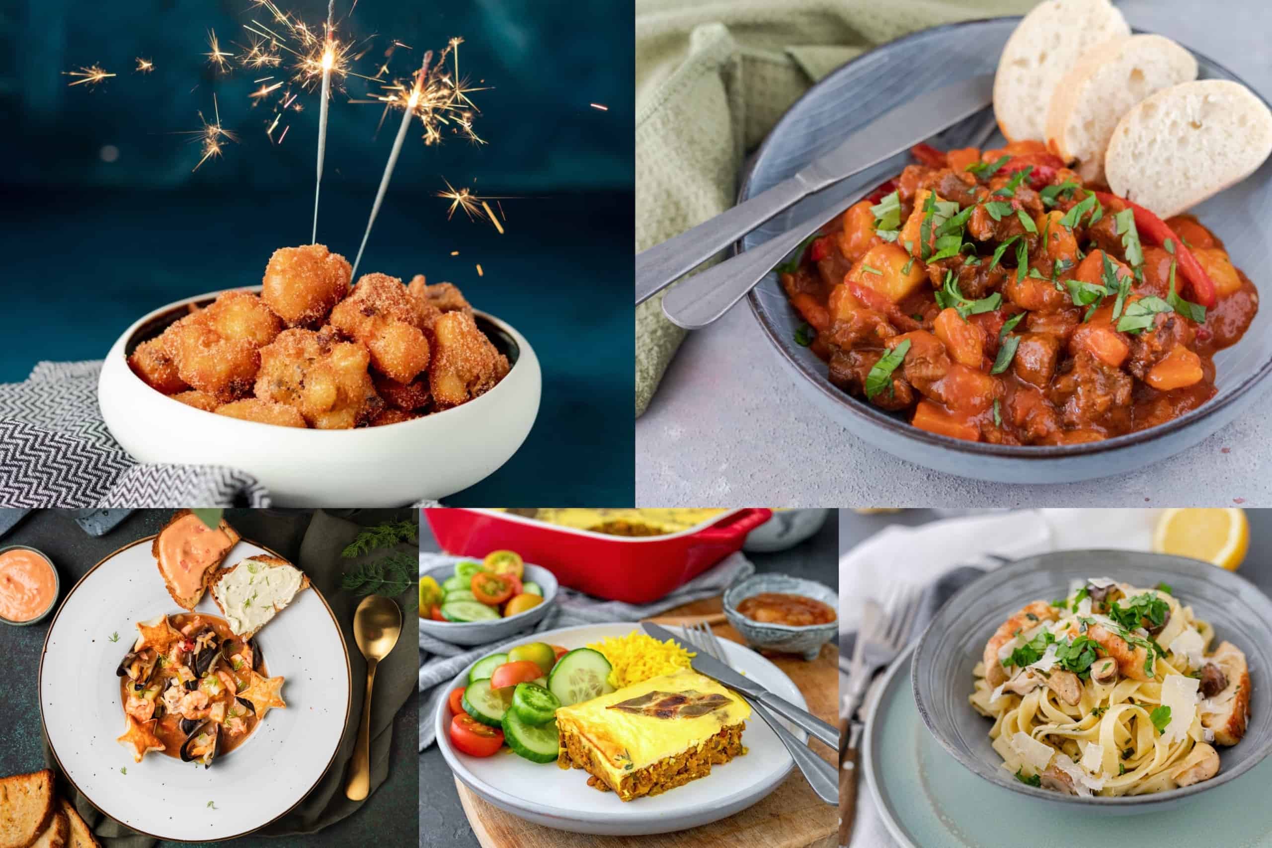 Eerst die laatste week van het jaar waarvoor ik een mooi weekmenu heb gemaakt met gevarieerde gerechten en veel comfort food, want daar heb ik nog steeds behoefte aan. Denk aan tagliatelle met paddenstoelen en gegrilde kip, zelfgemaakte Zuid-Afrikaanse bobotie, een heerlijke pan met goulash, bouillabaisse, hapjes en oliebollen voor Oudejaarsavond, een Tex Mex gerecht van mijn eigen kind voor Nieuwsjaarsdag en kippensoep en zelfgemaakte granola voor het weekend.