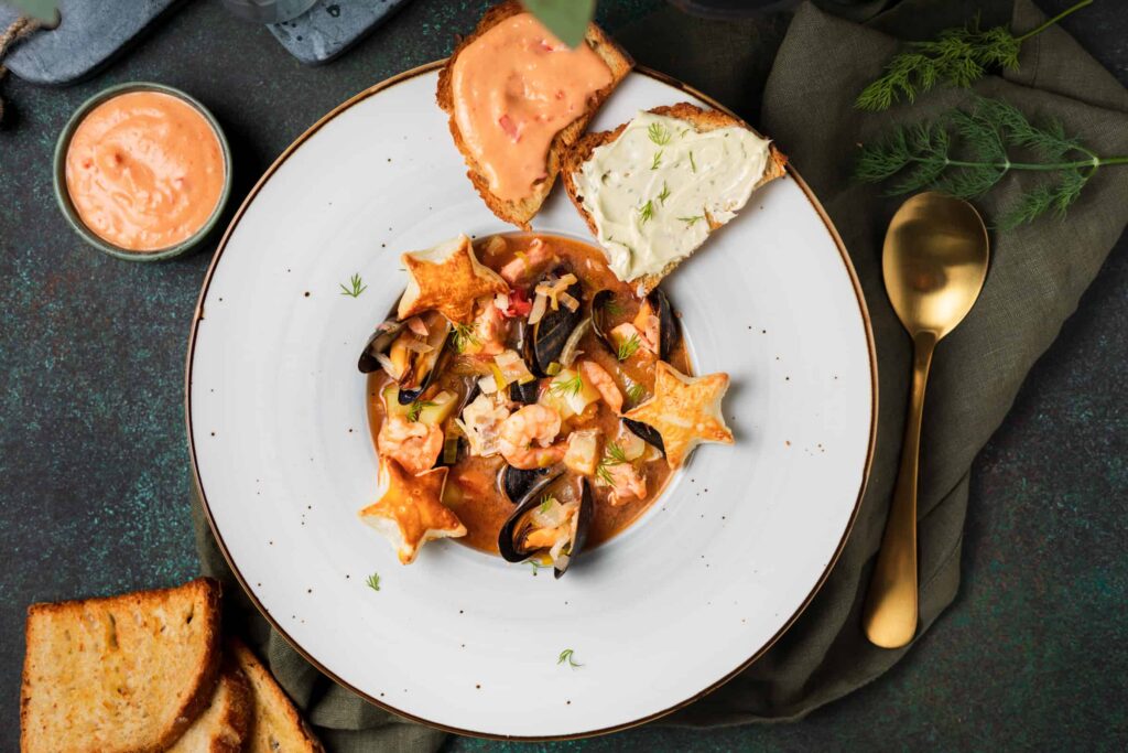 Ik weet nog niet precies wat wij gaan eten op Oudejaarsavond. Misschien halen we een borrelplank af bij een van onze favoriete horecazaken. En als ik ga koken, dan maak ik mijn bouillabaisse! Zo’n feestelijke maaltijdsoep vind ik perfect passen op een avond als deze.