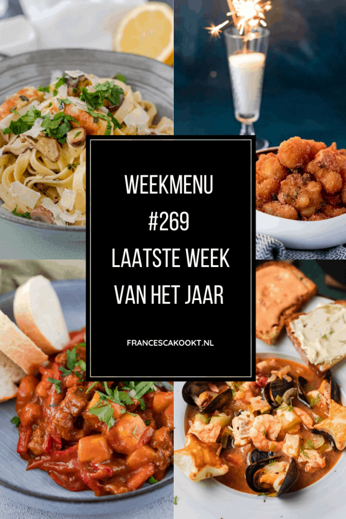 Geniet van mijn laatste weekmenu van dit jaar. Fijne jaarwisseling en ik wens iedereen een positief nieuw jaar toe. Waarin we, op den duur, weer mogen knuffelen en in ons hart beseffen dat niets in het leven zeker is. Ik hoop echt dat 2021 een nieuwe start aankondigt voor een leven waarin we meer bewust zijn van elkaar, de waarde van ons leven en de aarde waarop we leven. Liefs, Francesca