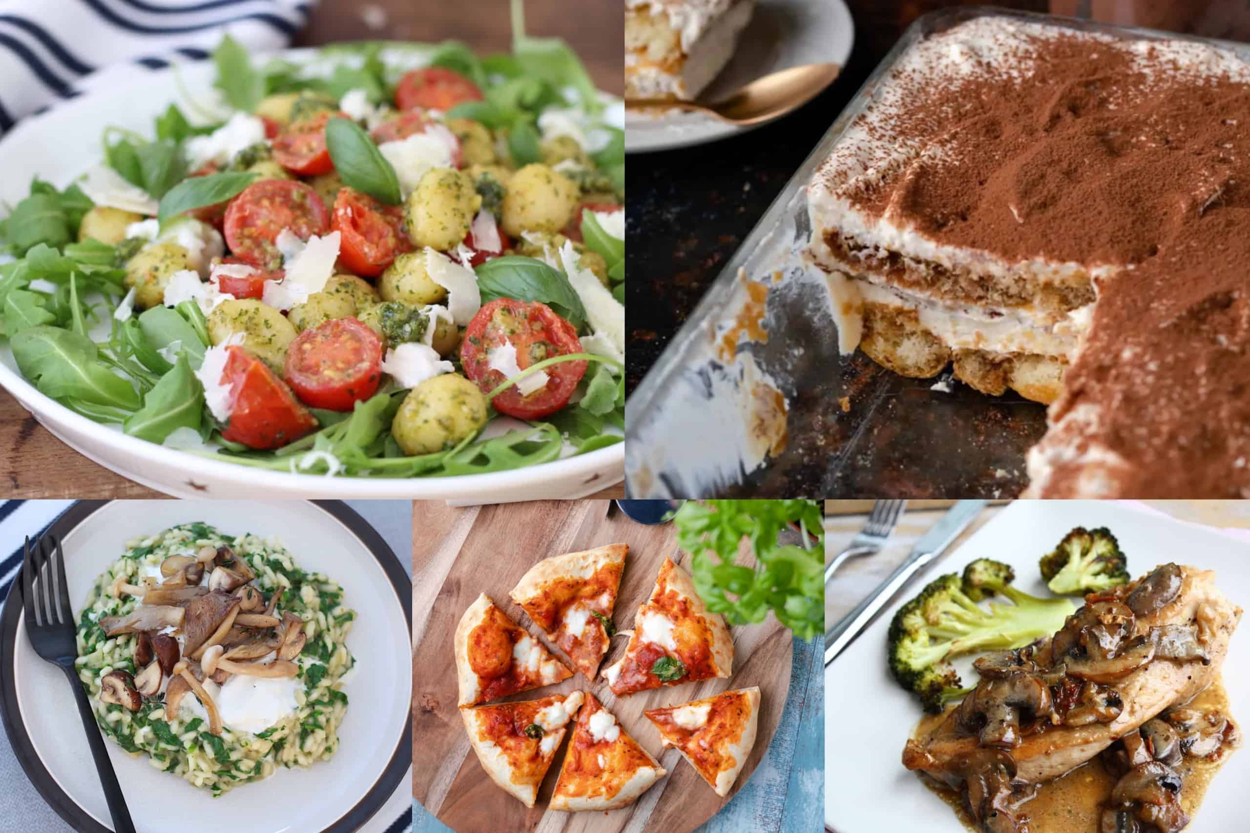 Zo vind je spaghetti aglio e olio, pollo al marsala, gnocchi met pesto en mozzarella, de lekkerste pizzarecepten, risotto met spinazie en burrata, caprese spiesjes én tiramisu in het weekmenu. Als dat geen Italiaans eetfestijn wordt in de Meivakantie ;-). Eet lekker!
