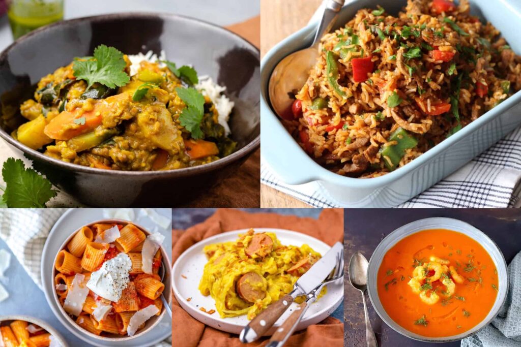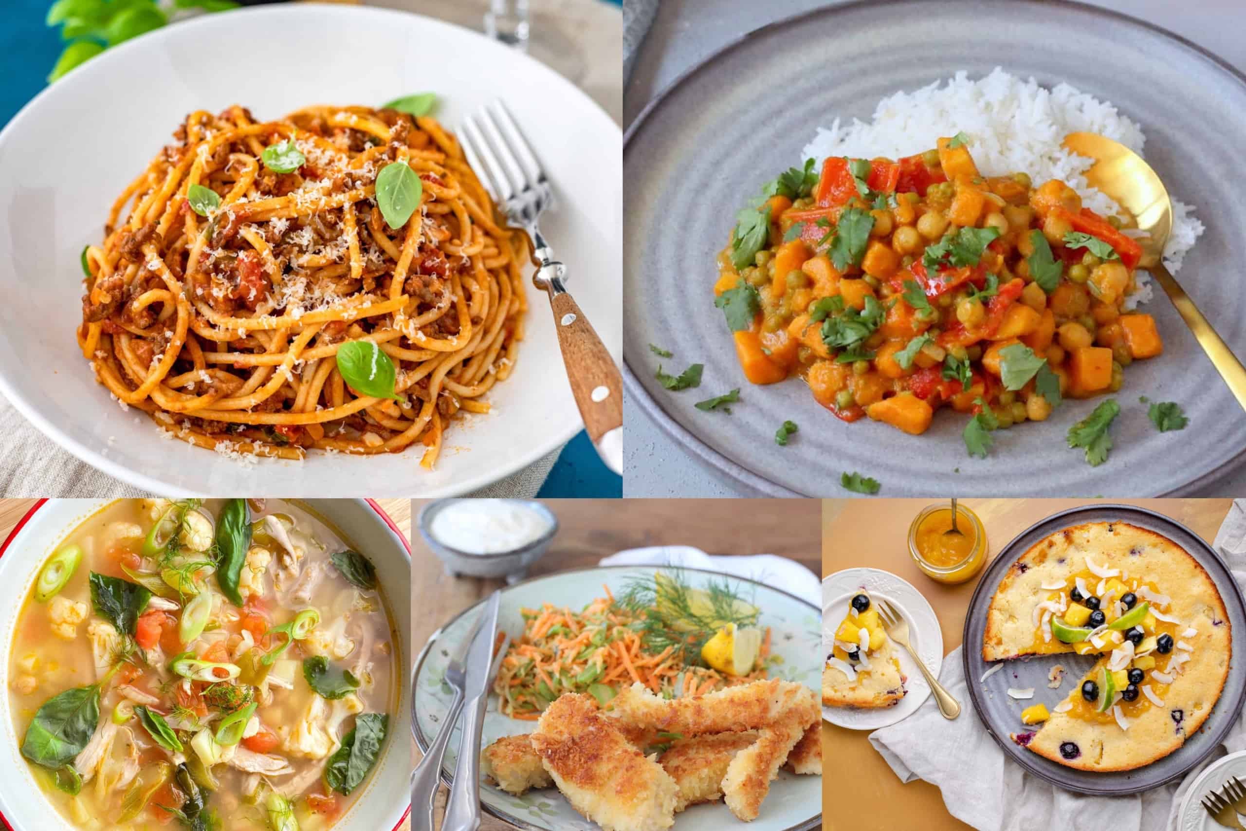 En vandaag heeft hij dat weer eens gedaan! In het weekmenu vind je deze keer dan ook zijn selectie. Met doordeweeks een zoete aardappelcurry met doperwten en kikkererwten, zelfgemaakte vissticks, kippensoep met tomaat en venkel, shoarma nasi en spaghetti bolognese. In het weekend maken we wortelwraps met vegan chili als lunch en op zondag bakken we mijn cake met mango, blauwe bessen en kokos. Eet lekker!