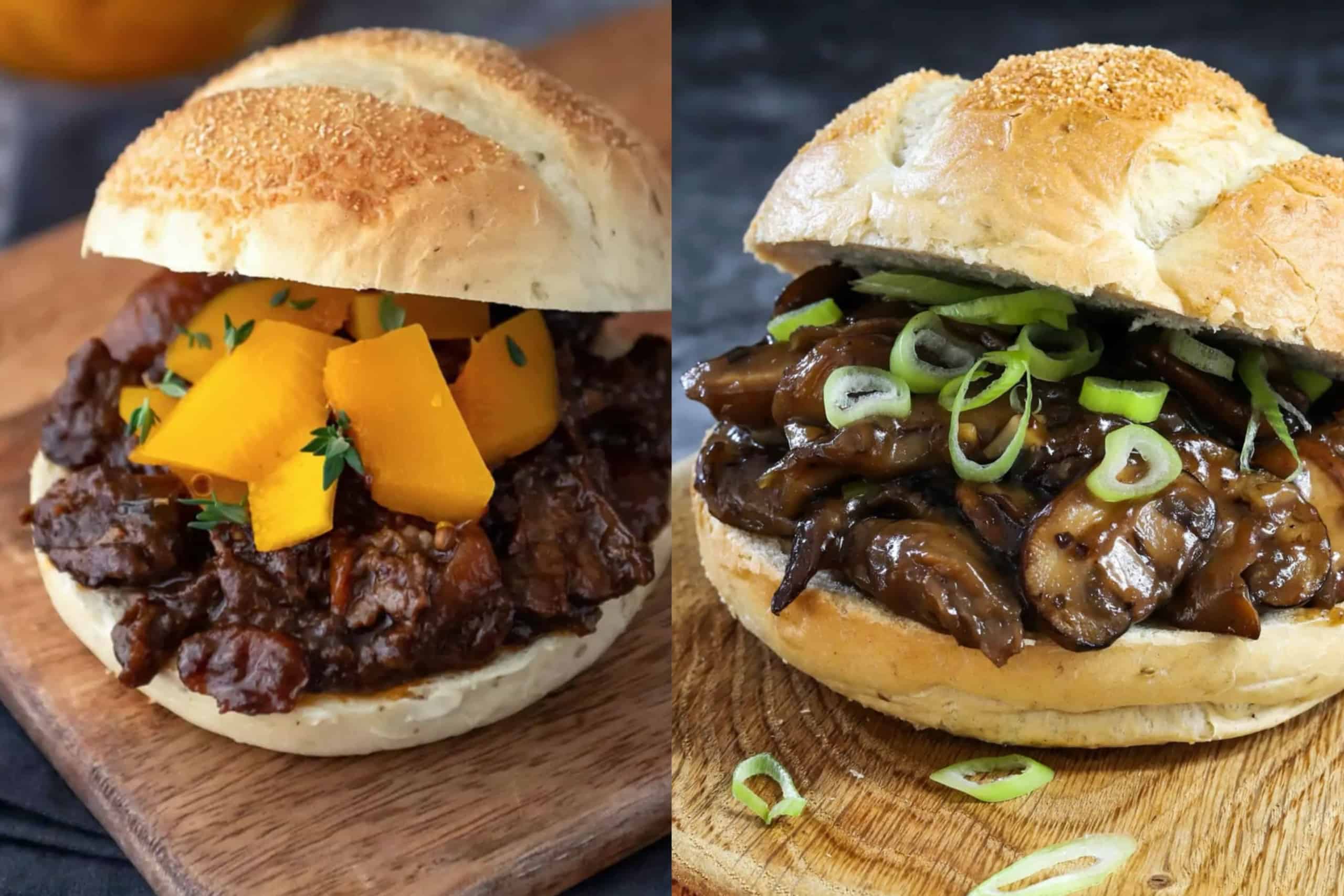Dit weekend maken we heerlijke broodjes als lunch. Kies jij voor het broodje stoofvlees met zoetzure pompoen en tijm of ga je voor het broodje met Oosterse paddenstoelen en lente-ui?