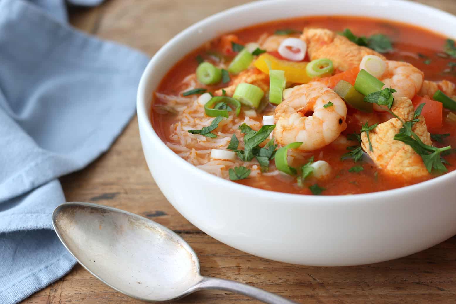 Maaltijdsoep met kip, garnalen en rijst