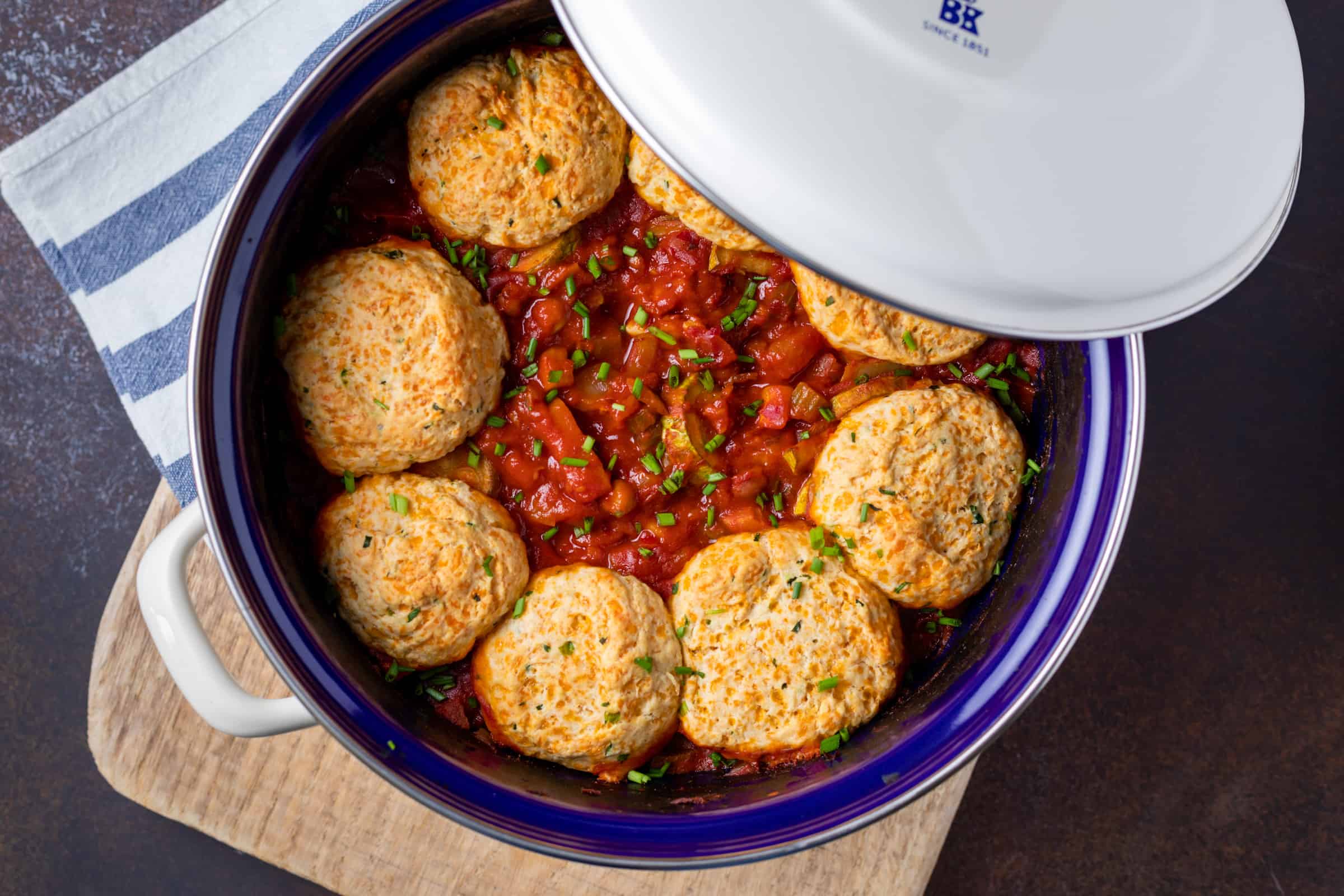 Kruidige groentestoof met harissa en kaasbroodjes