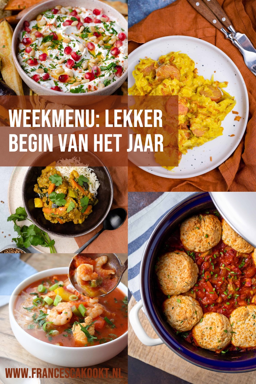Geniet van de gerechten uit dit weekmenu! Als je een foto deelt op social media, vergeet dan niet om te taggen met #francescakookt of @francescakookt. Dat vind ik ontzettend leuk om te zien.