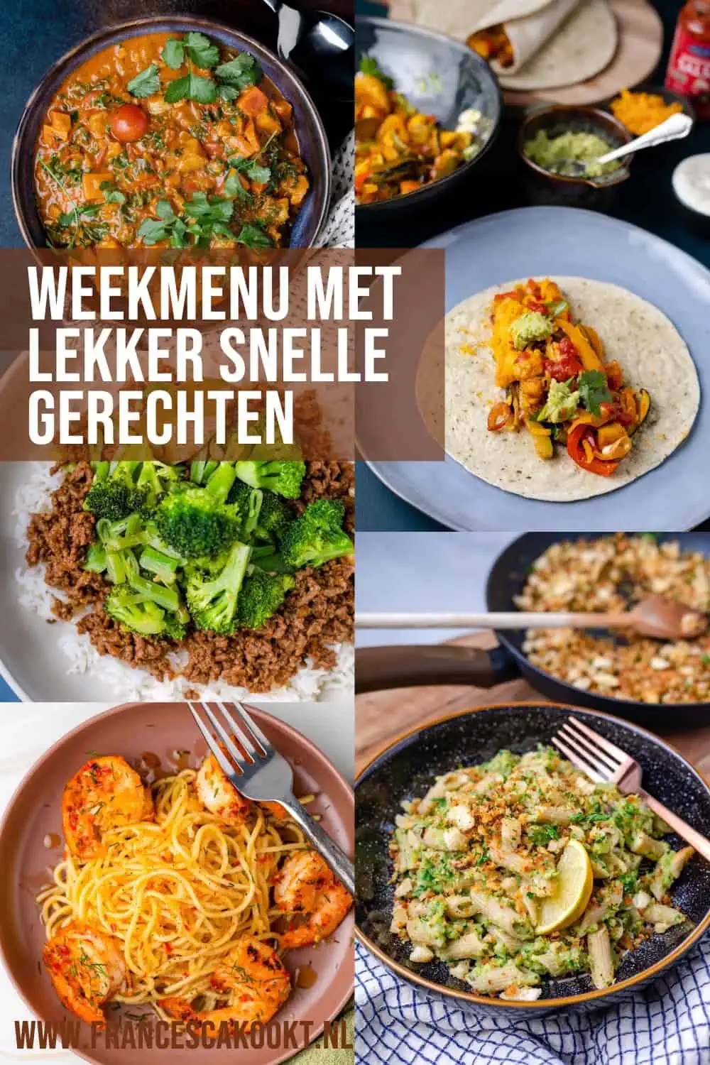 Geniet van de gerechten uit dit weekmenu! Als je een foto deelt op social media, vergeet dan niet om te taggen met #francescakookt of @francescakookt. Dat vind ik ontzettend leuk om te zien.