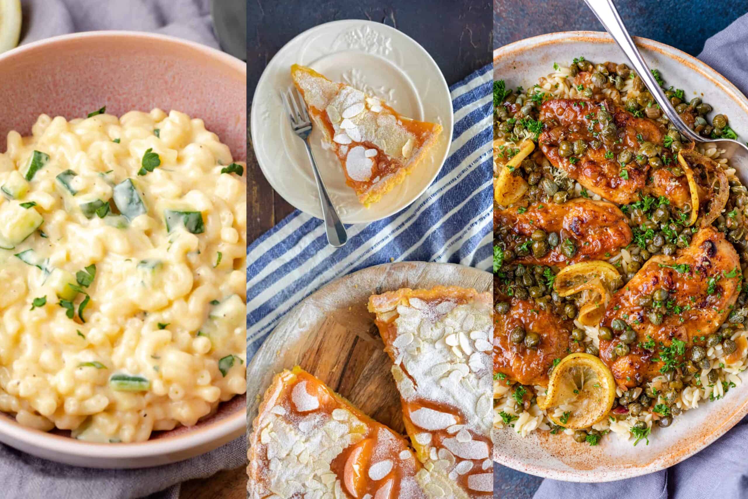 In het weekmenu vind je deze keer een zoetzure wokschotel met paprika en paneer, krokante kip burrito’s op de Tex Mex dinsdag, Mac and Cheese met courgette en citroen, kabeljauwcurry met raapstelen en bloemkoolrijst, kip piccata met orzo, quinoasalade met biet, wortel en radijsjes en abrikozen crostata. Geniet ervan!