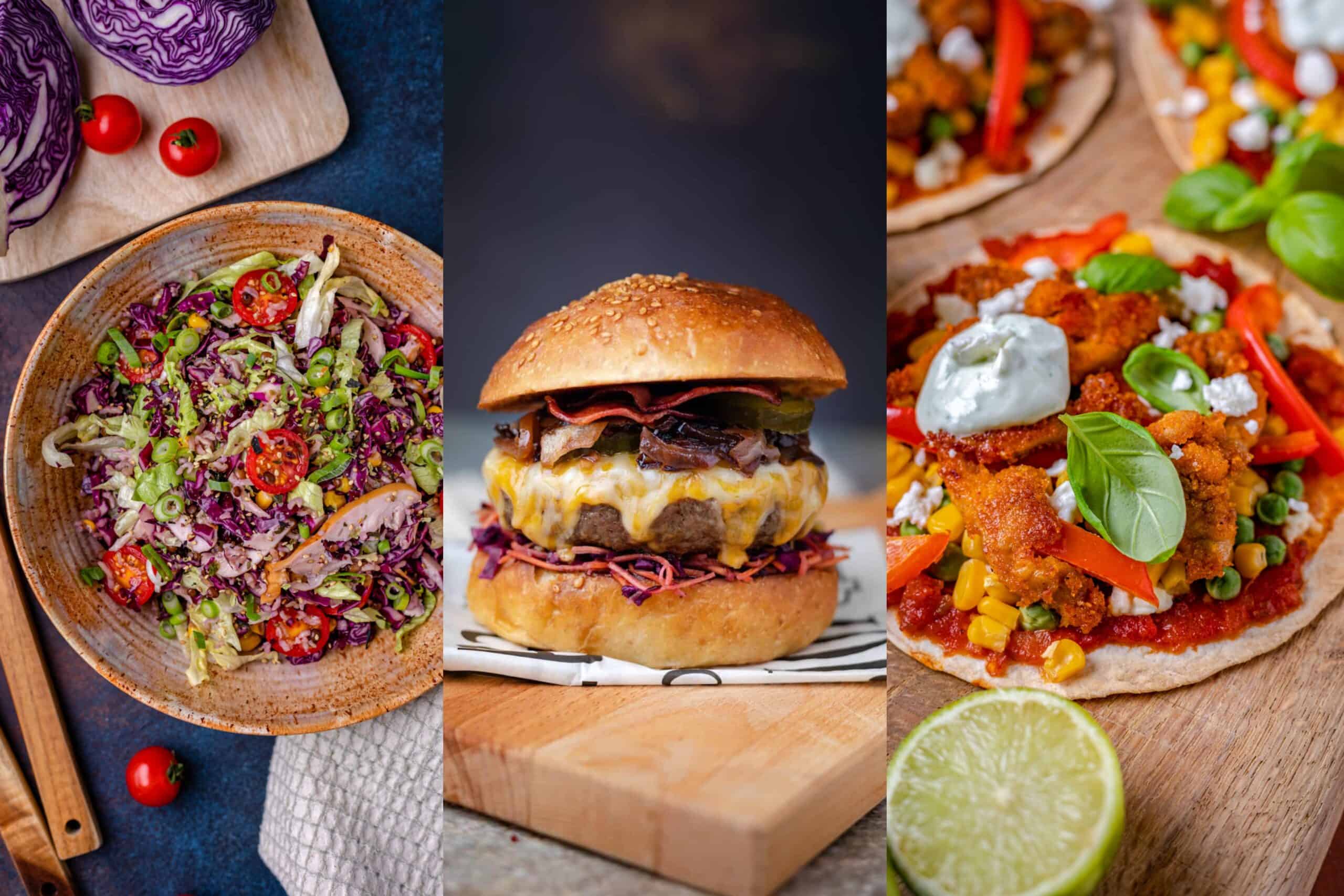 In het weekmenu vind je deze keer ravioli met spinaziepesto, burrata en honingtomaten, tortilla pizza’s met krokante kip, Surinaams gehakt met broccoli en rijst, rode koolsalade met gerookte kip en sojadressing en cheeseburgers met gekarameliseerde ui en koolsalade. In het weekend maken we garnalen saganaki met tomaat en ouzo en cheesecake met rabarber en aardbeien. Eet lekker en fijne vakantieweek!