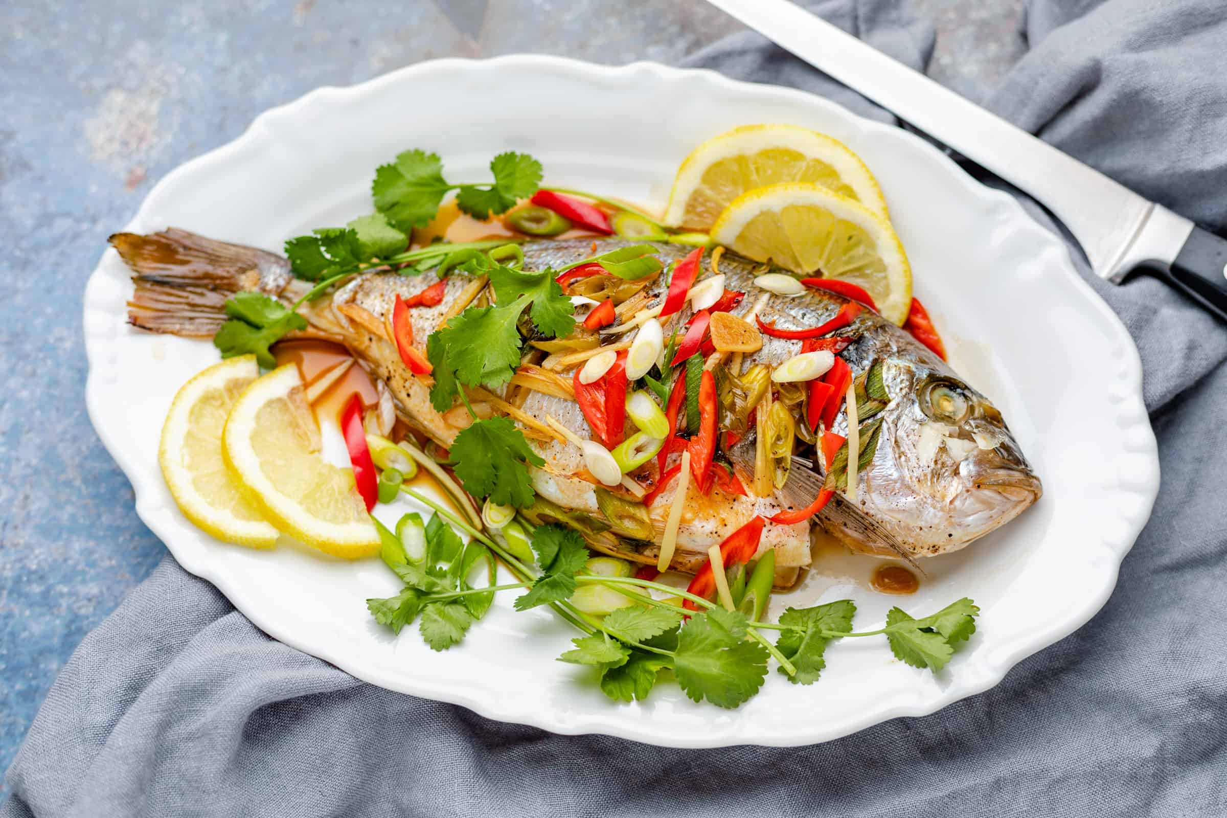 Dorade uit de oven met gember, knoflook en peper