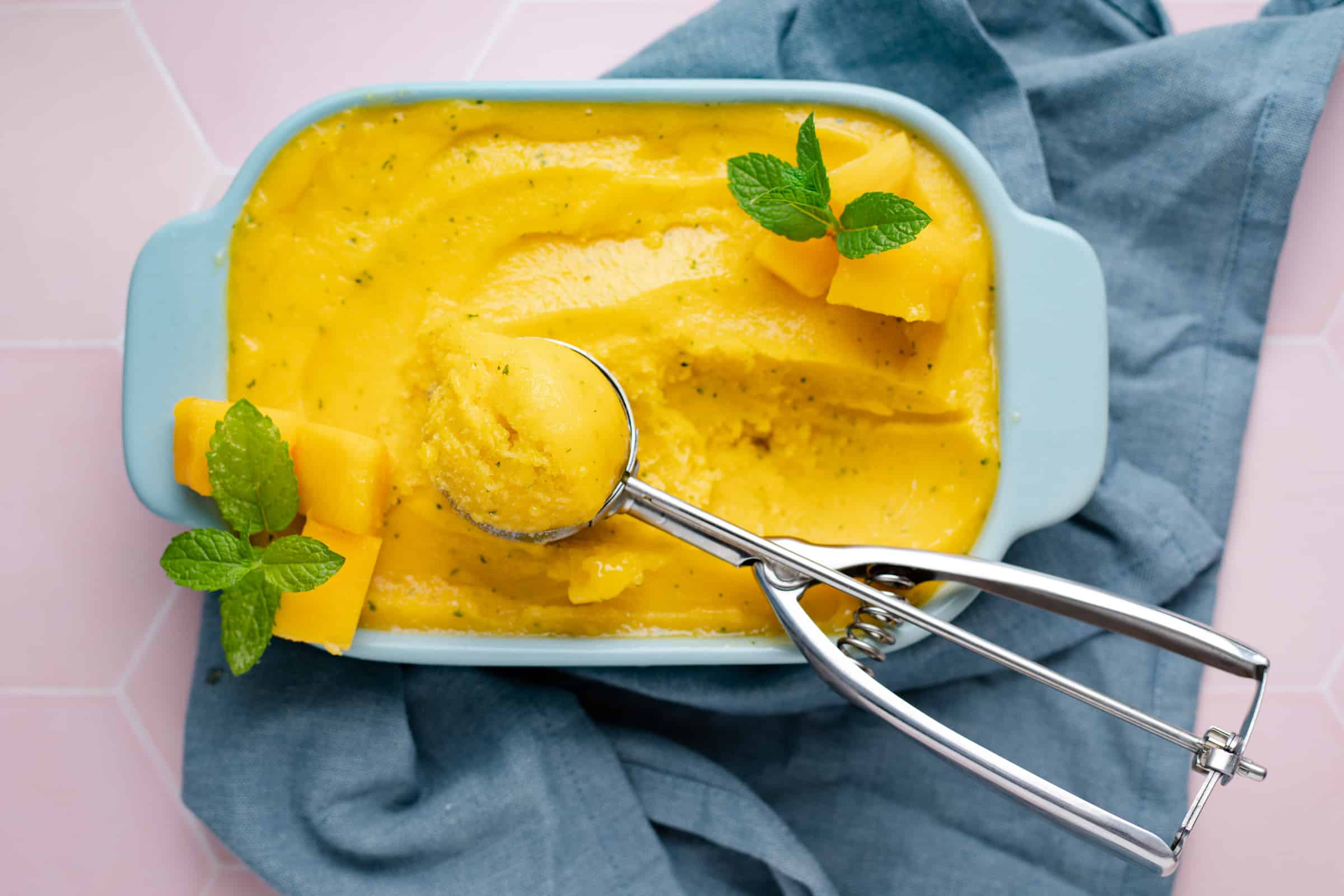Aan het einde van de week dwingen we de zomer gewoon af met dit mango sorbetijs! Zo makkelijk om te maken en zo lekker.