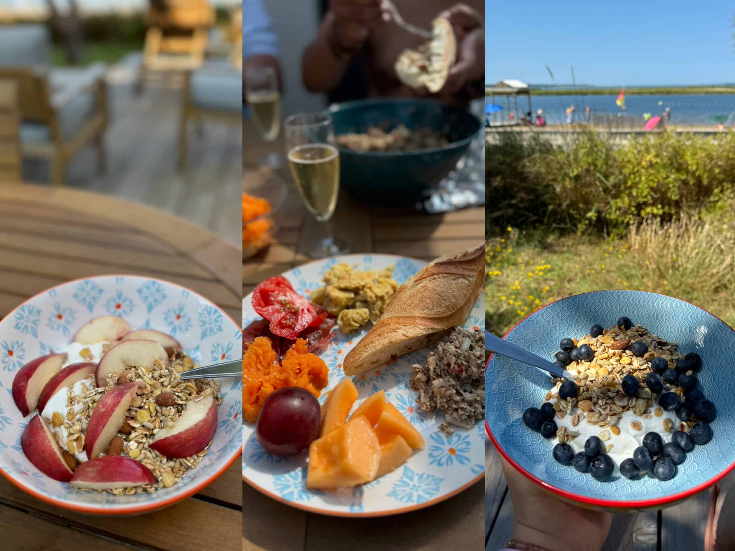 1. Neem een voedzame muesli of cruesli mee vanuit Nederland naar je vakantiebestemming. Maak bijvoorbeeld mijn muesli of koop een variant van Holie (die zakken zijn ook goed hersluitbaar). Combineer dit met een kwark of Griekse yoghurt en zoet, vers fruit dat je lokaal koopt.
