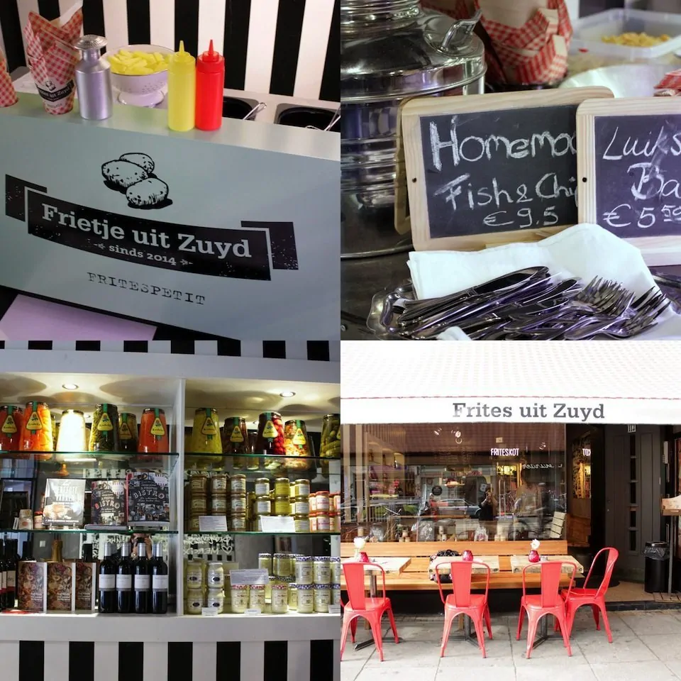 De gevel van Frites uit Zuyd lacht me toe en bij binnenkomst valt me direct op dat deze zaak niets weg heeft van een ‘gewone’ snackbar. Mooi ingericht en aan de wanden staan er producten en kookboeken uitgestald. Ik zie in mijn ooghoek bijzondere mayonaise en piccalilly soorten uitgestald staan die je kunt kopen voor thuis, zoals Belze Majoneis (een van mijn favorieten). Je kunt er afhalen of direct opeten en kinderen kunnen zich uitleven in de ‘Fritespetit’.