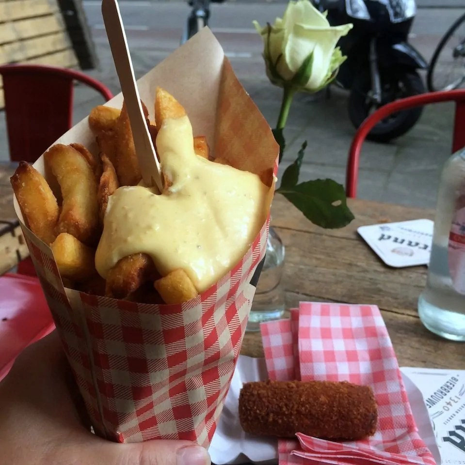 Met mijn rood-wit geruite zakje strijk ik neer op het terras (met een paar maanden geleden bedoel ik zeker een half jaar geleden, ik loop wat achter met blogs schrijven) en ik neem een hap. Man oh man, wat is deze frites lekker! Vooral ook in combinatie met de piccalilly mayonaise. De oude kaas croquet is hemels. Enige commentaar wat ik kan leveren is dat het formaat te klein is of de croquet te lekker waardoor ik er nog eentje wilde. Maakt allemaal niet uit, Frites uit Zuyd is met vlag en wimpel geslaagd.