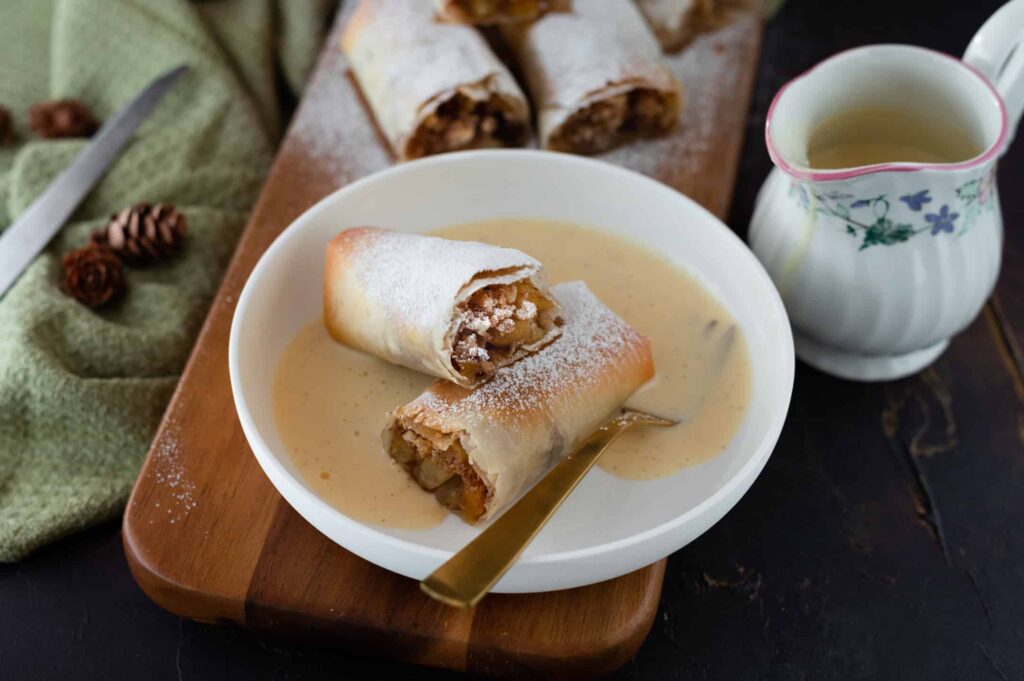 Mini apfelstrudels met zelfgemaakte vanillesaus